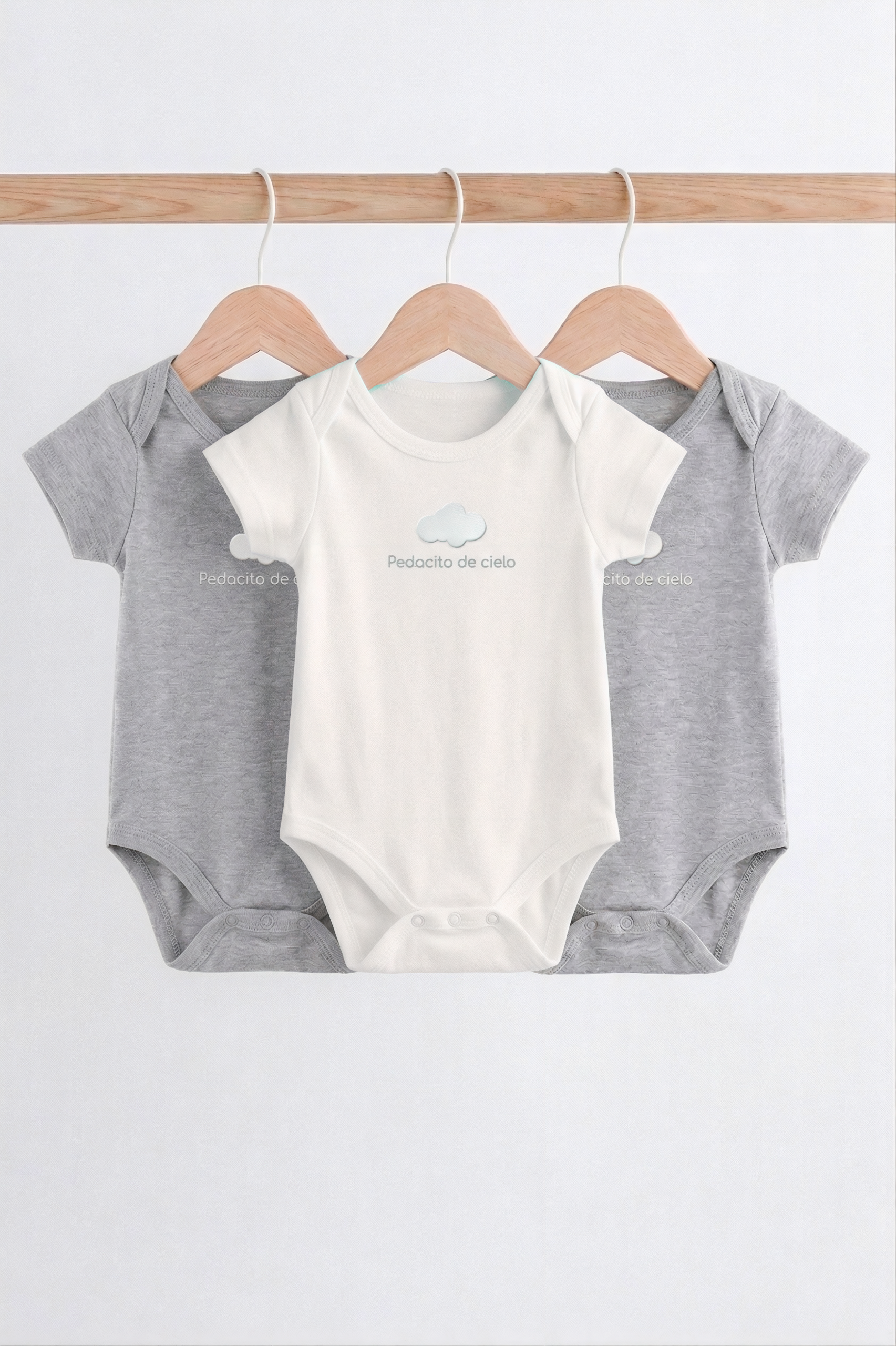 Envuelve a tu bebé en la suavidad de una nube. Nuestro mameluco básico en color blanco o gris es la prenda esencial que combina ternura y practicidad. Con un diseño minimalista que incluye una delicada nubecita y la frase “Pedacito de Cielo”, es la opción perfecta para los primeros meses de vida o para ese primer regalo inolvidable.